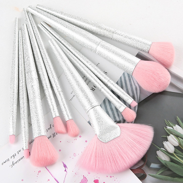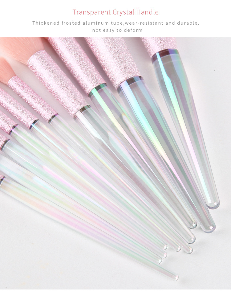 10pcs 3D acrylic handle Travel Makeup Brush Set Synthetic Hair Brush Tools