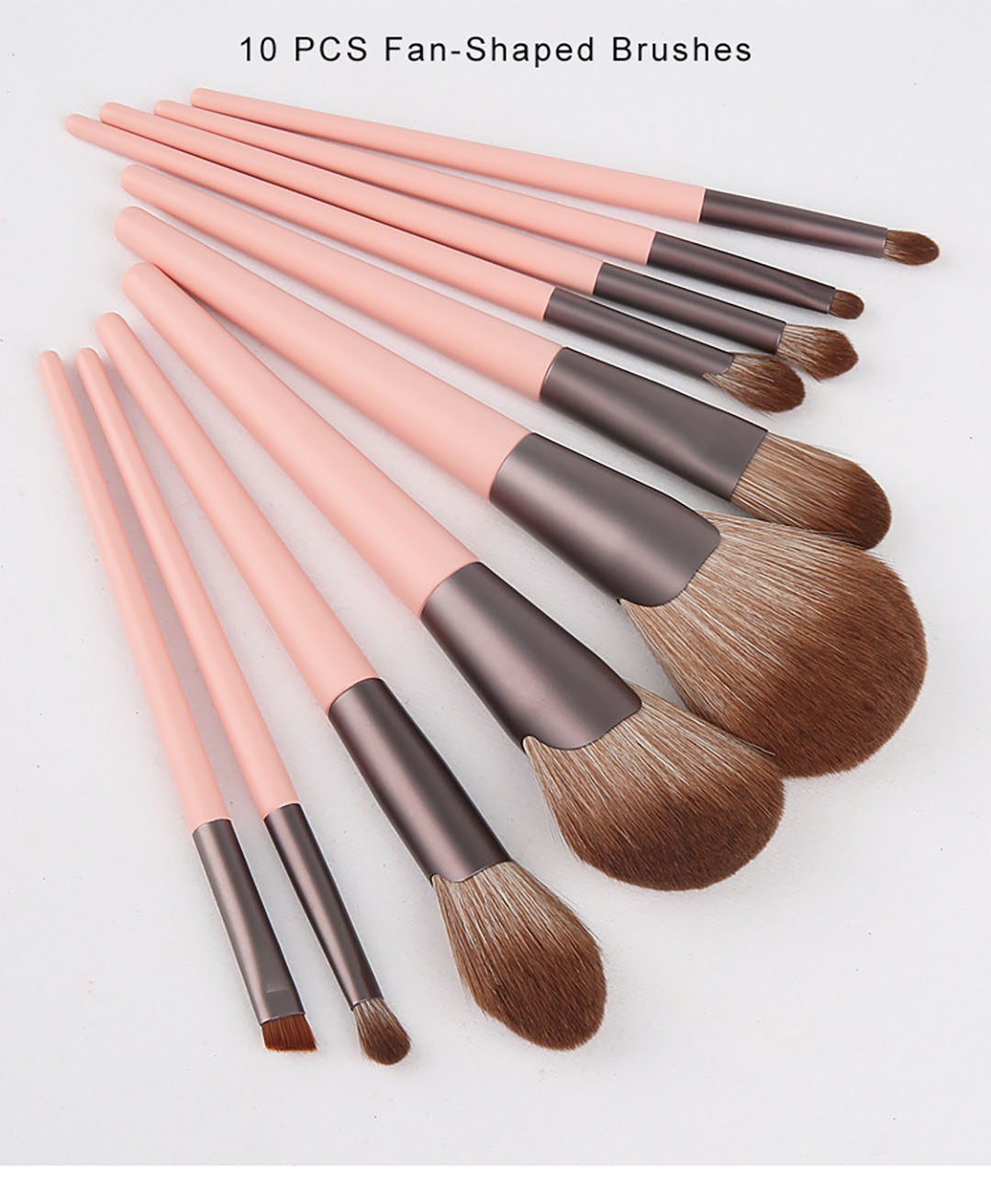10pcs Pink makeup brush set custom logo face fan contour brush