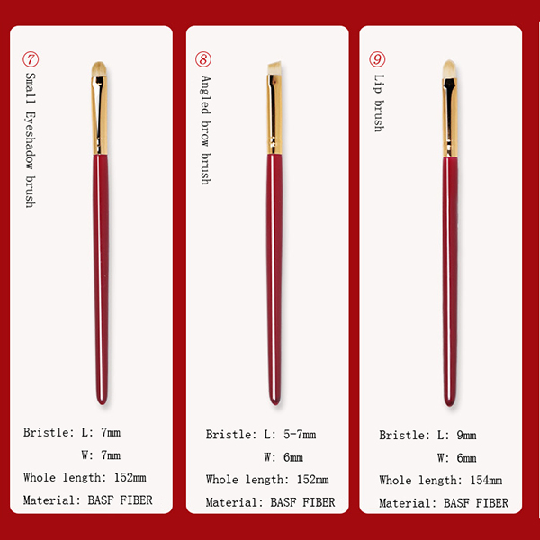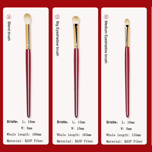 Luxury red handle cosmetic brushes are made of beige color synthetic hair, Gold aluminum ferrule and red wood handle
