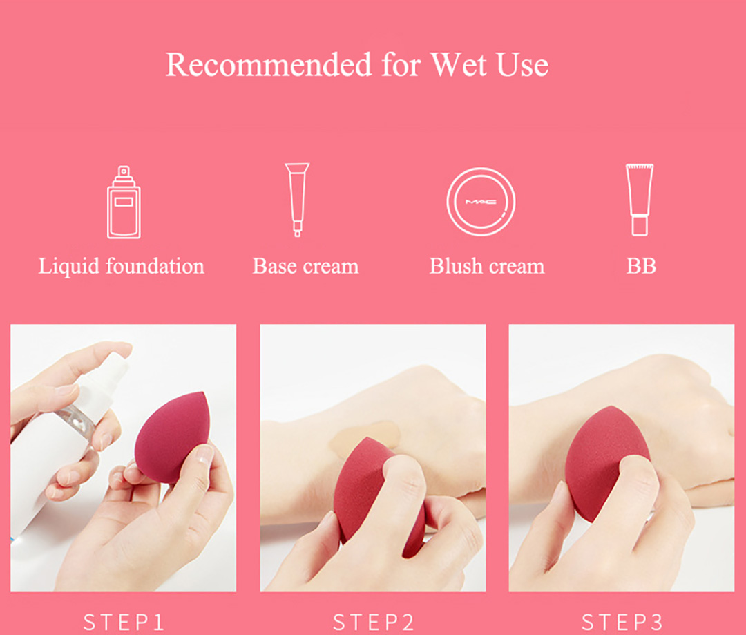 Wet Used with BB cream, Liquid foundation, Makeup Base, etc.