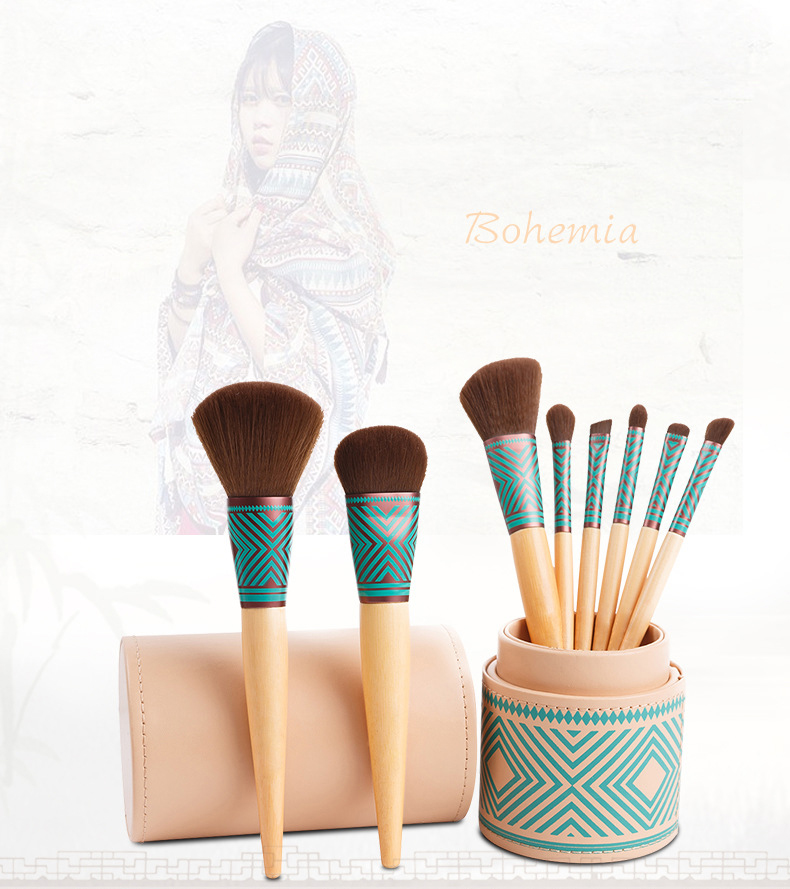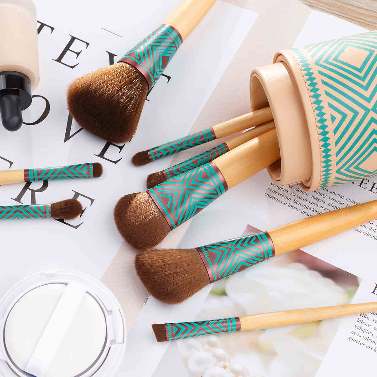 8Pcs Bohemian Style Cosmetics Brushes Eco-friendly Bamboo Makeup Brush Sets Beauty Accessories