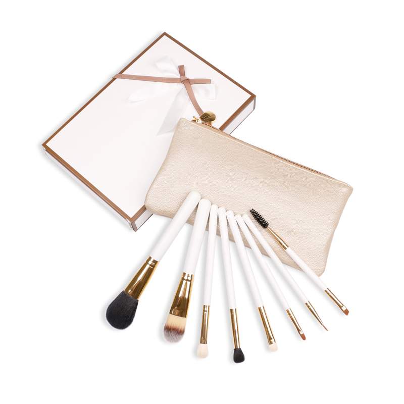 Brush set: Powder brush, Foudation brush, Smokey Eye brush, Large Eyeshadow brush, Eyeblending comb, Double Eyebrow brush, Lip brush, Eyeliner brush
