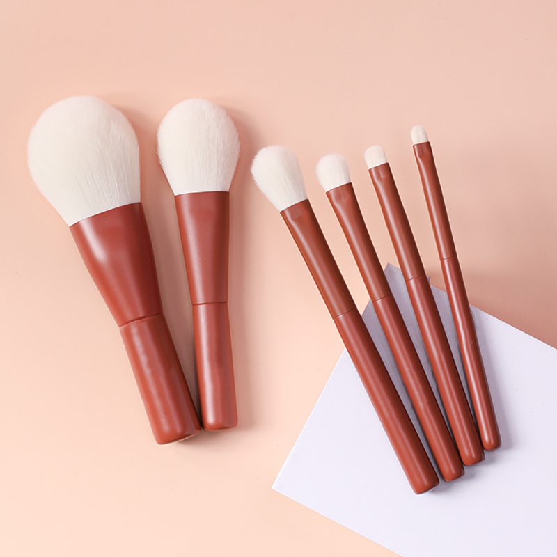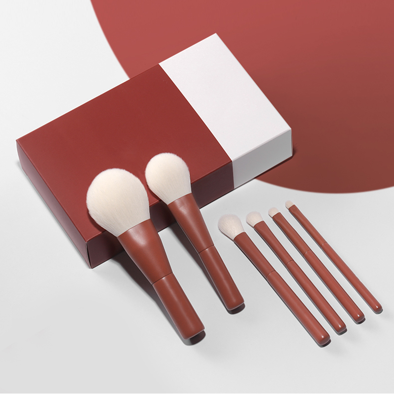 Custom logo 6pcs Matt red synthetic hair kabuki makeup brush set for travelling