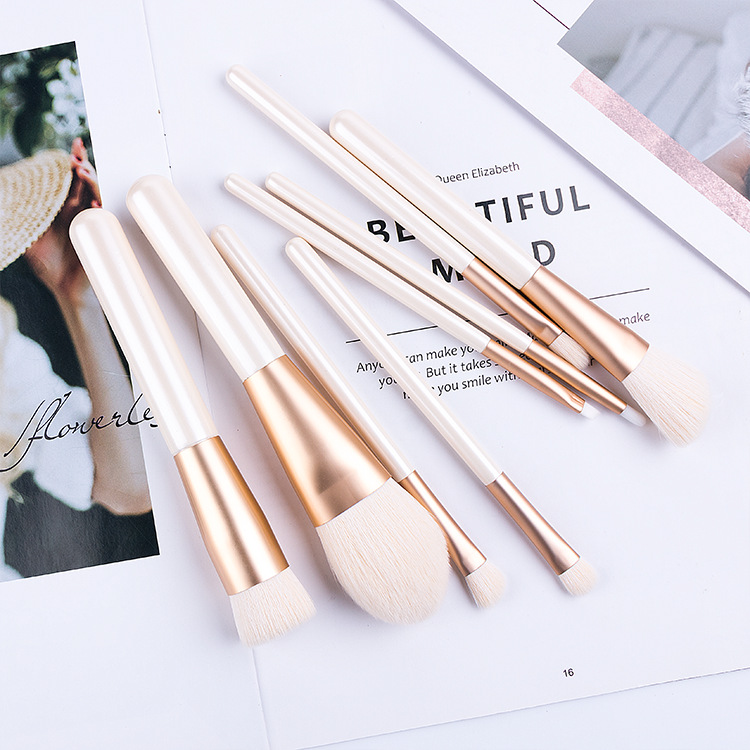 Custom logo 8pcs White Goat imitation hair makeup brushes set
