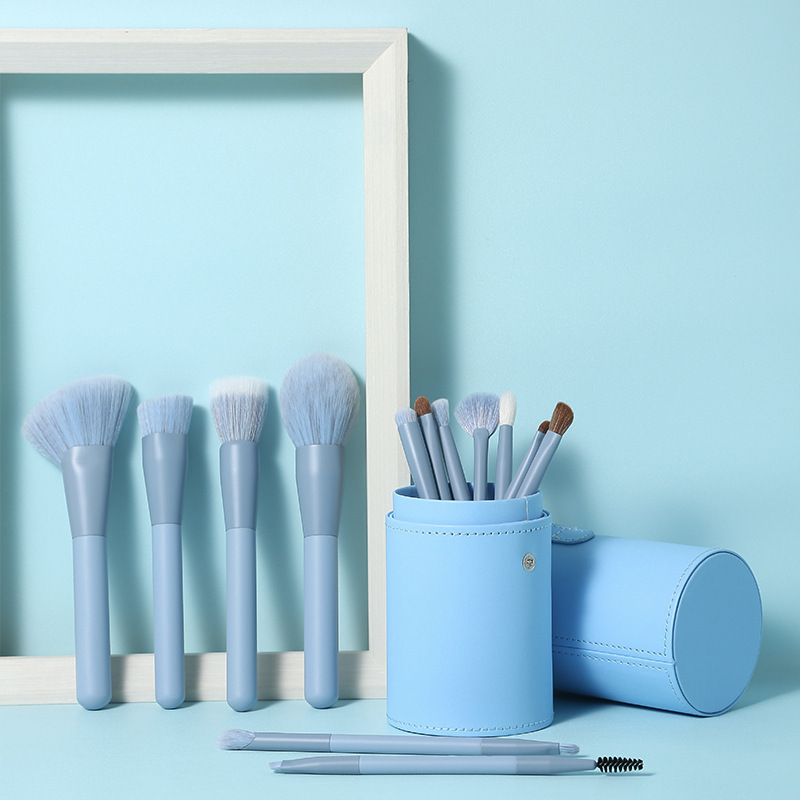 Custom Luxury 13PCS Blue Makeup Brush Set Premium Synthetic Foundation Powder Concealers Eye Shadows Beauty Tools