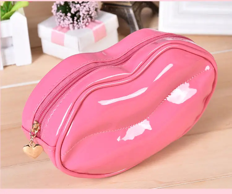 Customize Lovely Lip Shaped Makeup Brushes Bag with Zipper Cosmetic Organizer Pouch