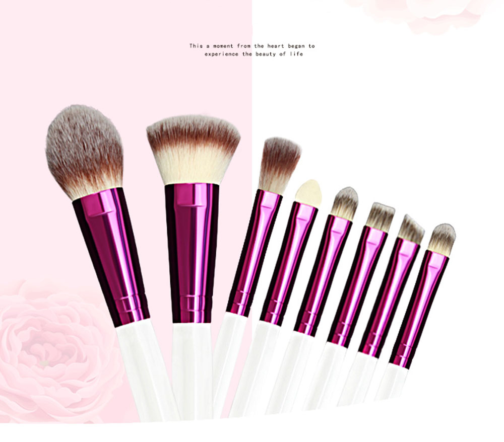 kabuki brush; Flat top foundation brush; Multi-function brush; Precision crease brush; Blender brush; Small lip brush; Flat angled foundation brush; blending eye brush; Angled shading brush;