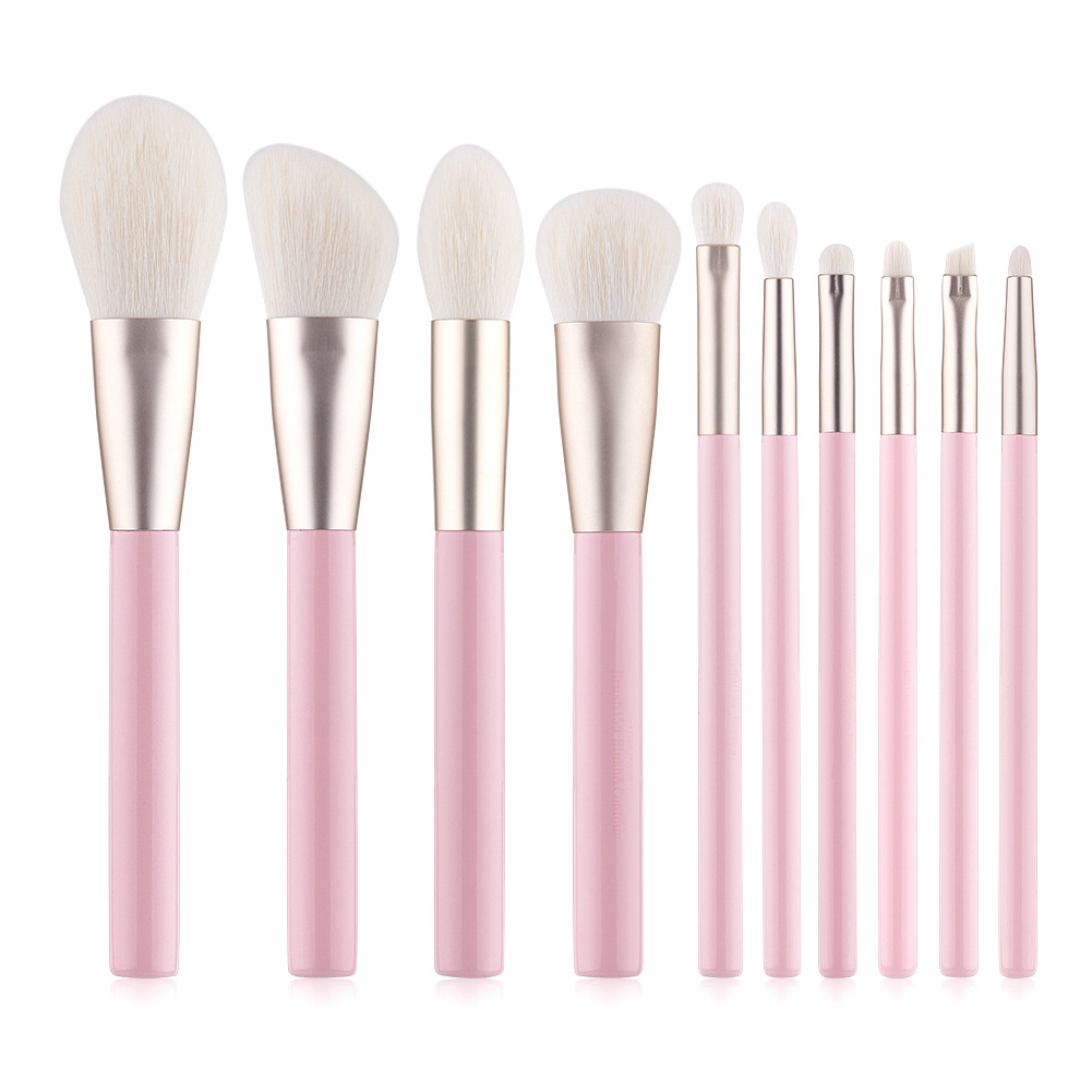Customize Premium Bionic Wool Makeup Brush Set 10PCS Pink Foundation Eye Shadow Lash Cosmetic Brushes