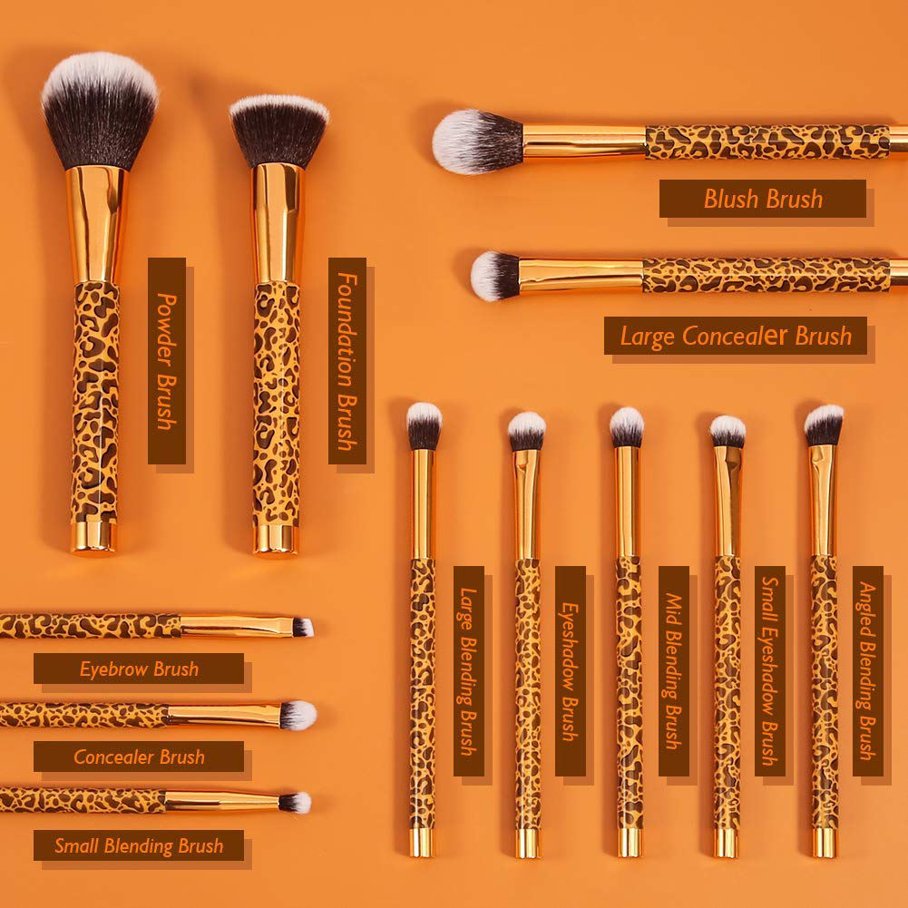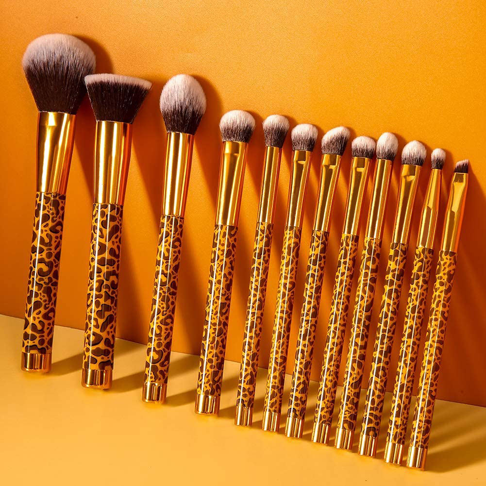 Customize Premium Leopard Print Makeup Brush Set Soft Vegan Hair Powder Foundation Eyelash Lipstick Cosmetic Brushes