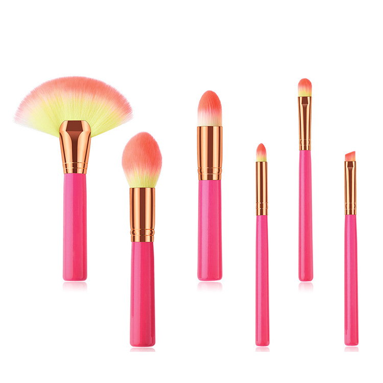 Customized 6pcs cosmetic makeup brush set with ombre color synthetic hair