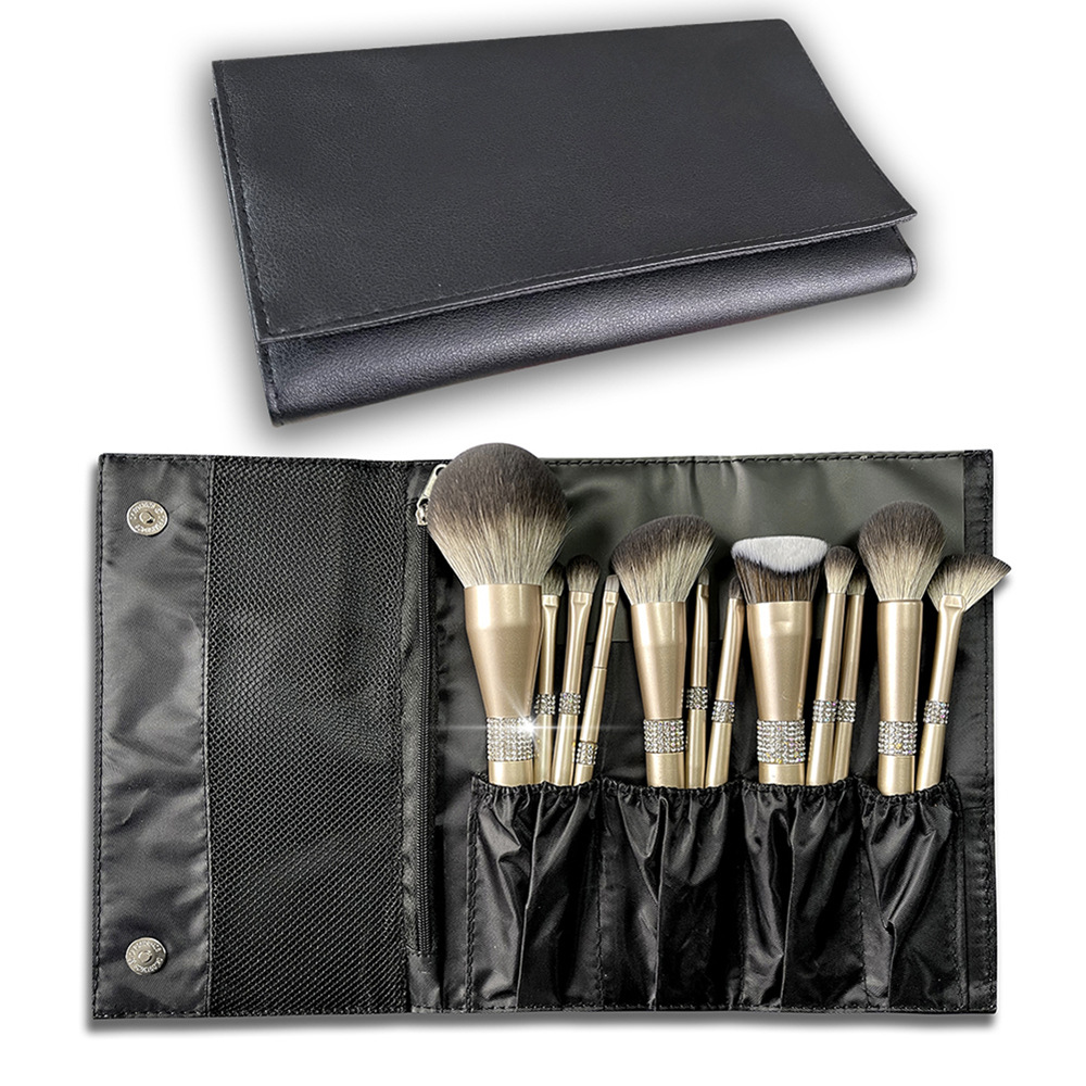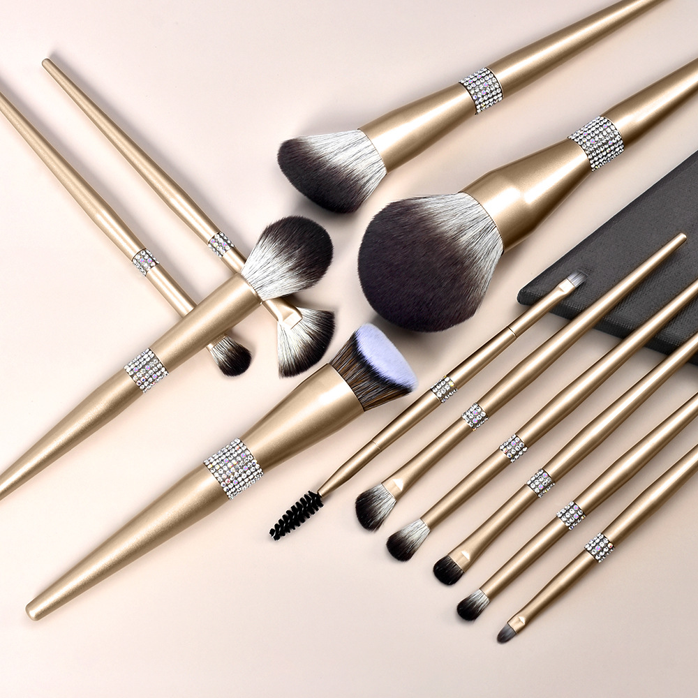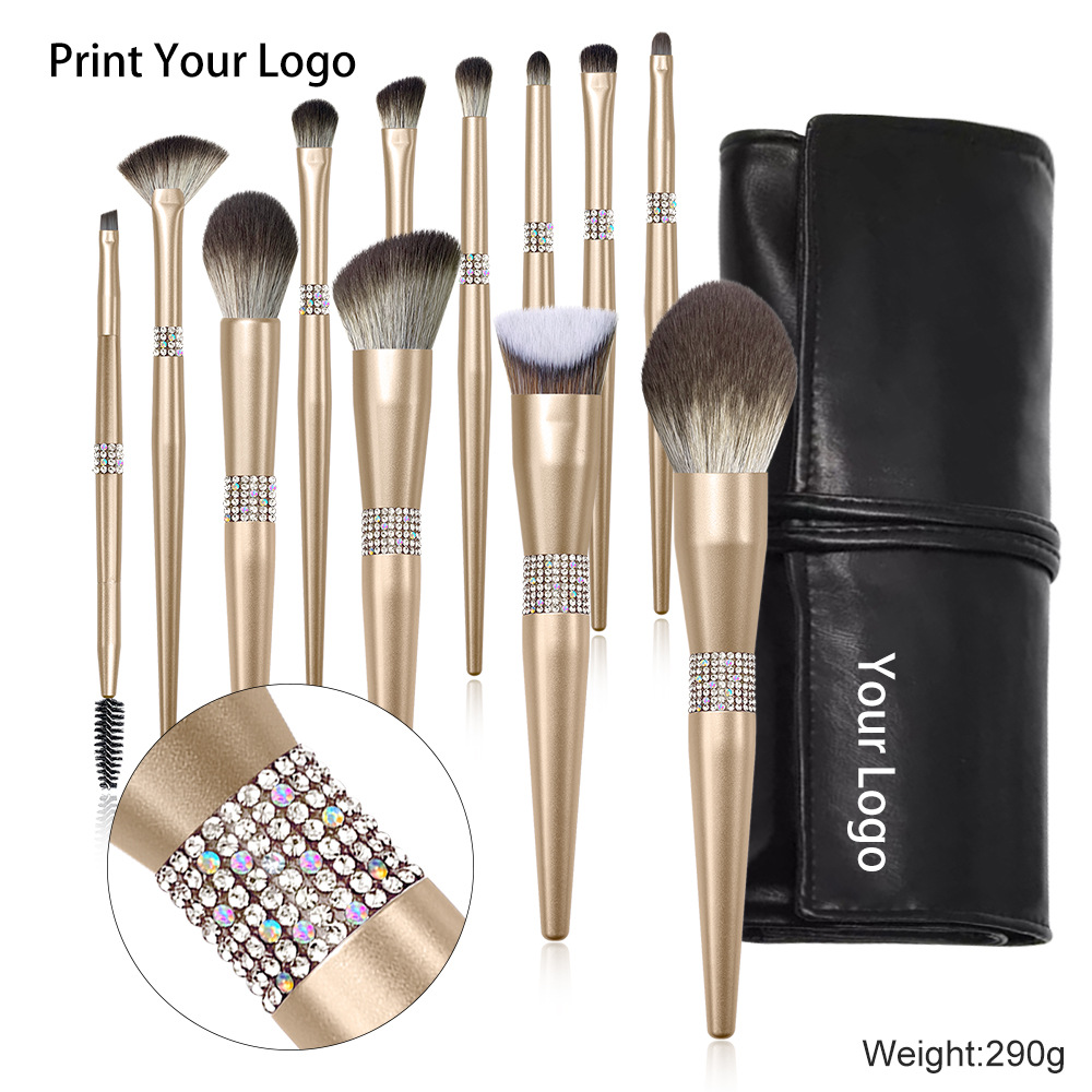 Factory New Glitter Rhinestones Makeup Brushes 12Pcs Premium Vegan Make up Kit with Beauty Case