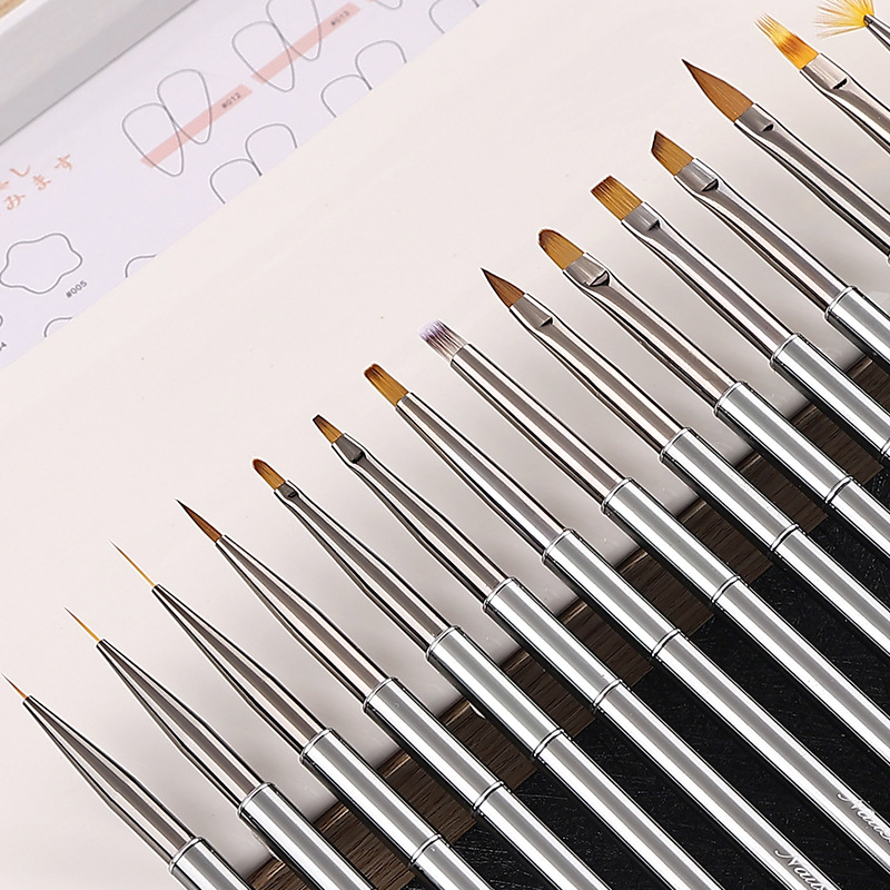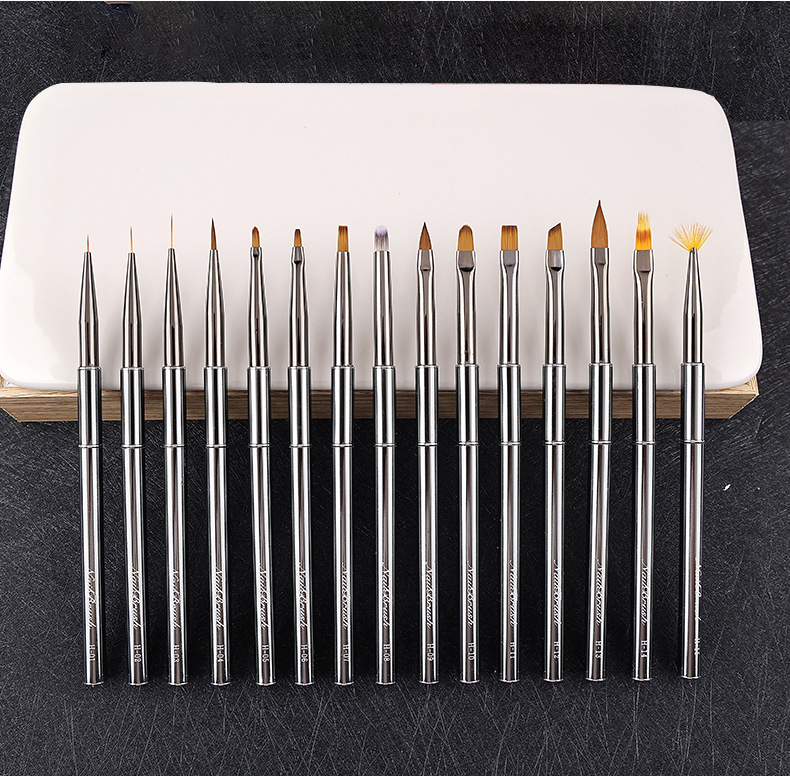 High Quality 15Pcs Nail Brush Set Metal Handle Painting UV Gel Liner Acrylic Nail Brushes