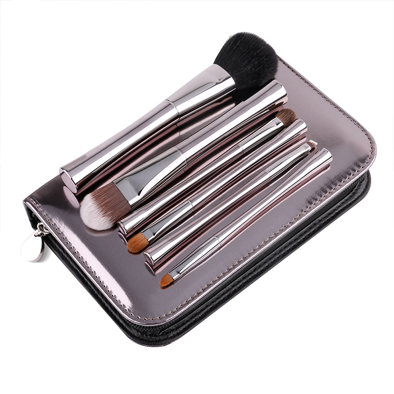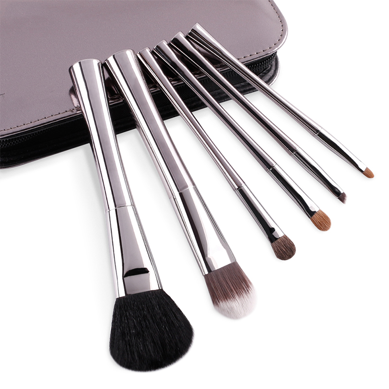 Hot Sale Synthetic Hair 6PCS Cosmetic Brush Metallic Makeup Brush Set with Bag