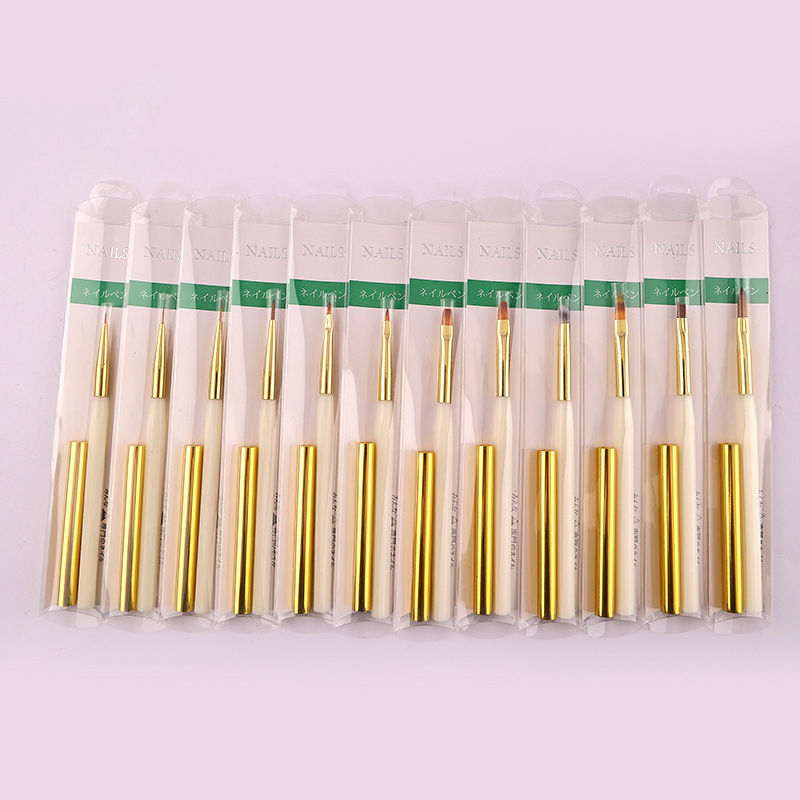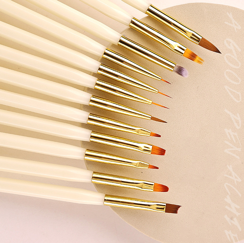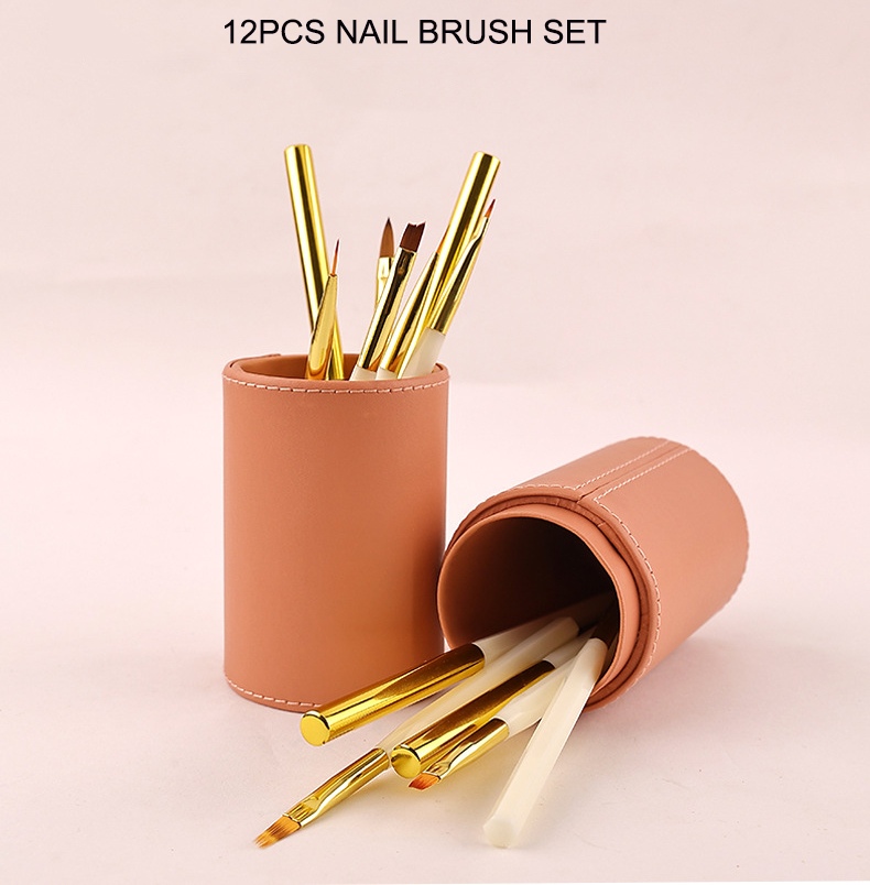 Nail Art Tools New Multi-ribbed Handle 12Pcs Quality Nylon Hair Pulling Light Therapy Nail Brushes with Bag