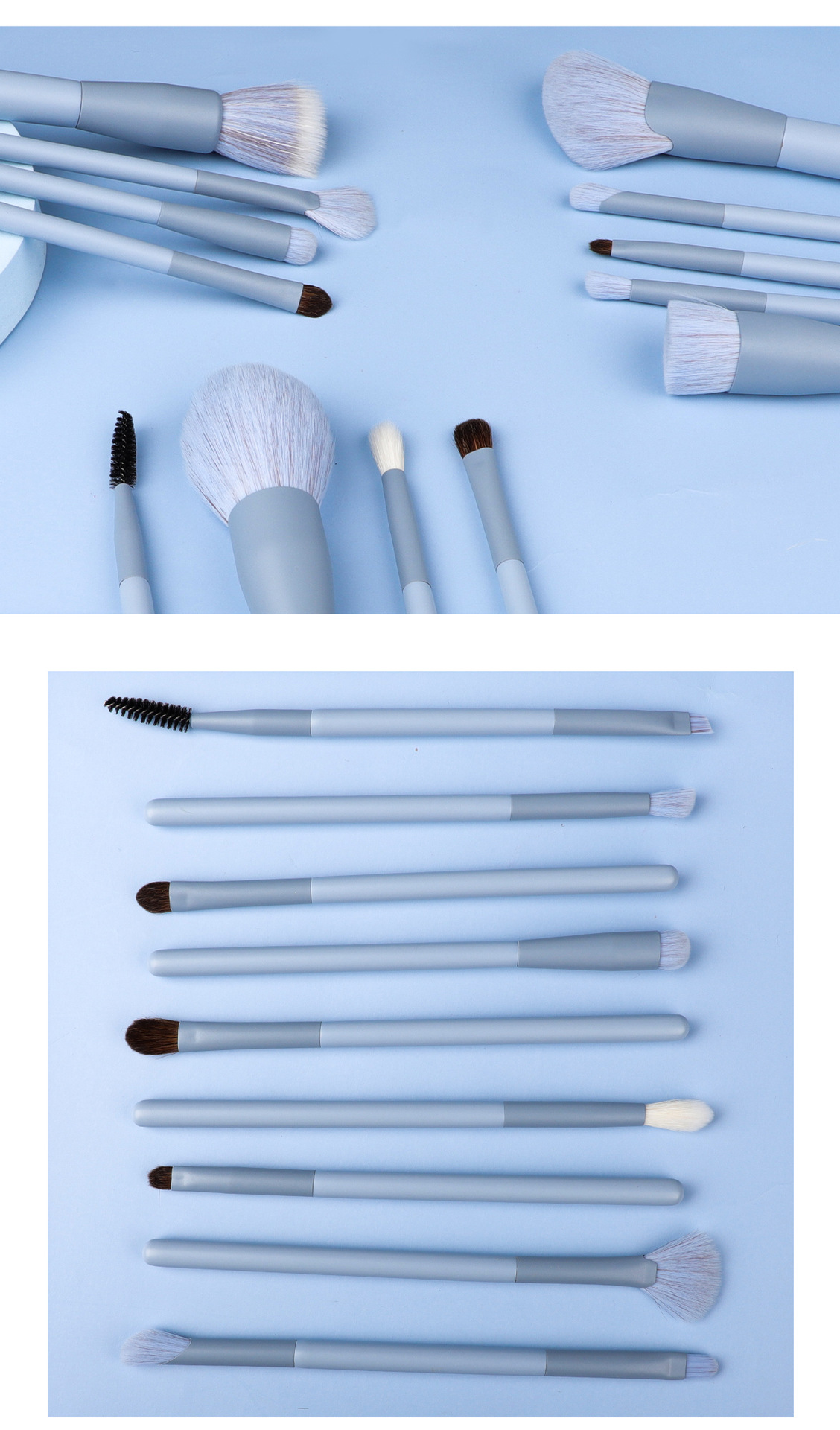 #Brush set: #Powderbrush, #Blushbrush, #Foundationbrush, #Highlightbrush, #Eyshadowbrush, #concealerbrush, #detailbrush, #Blendingbrush, #Eyebrowbrush, #eyelashbrush