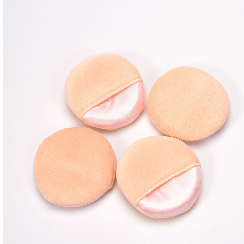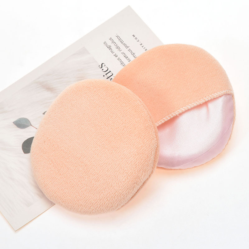 2. Color detail: the round powder puffs are soft and fluffy, very comfortable, and have a champagne-colored look, while a ribbon on the back of the puff makes it easy to hold