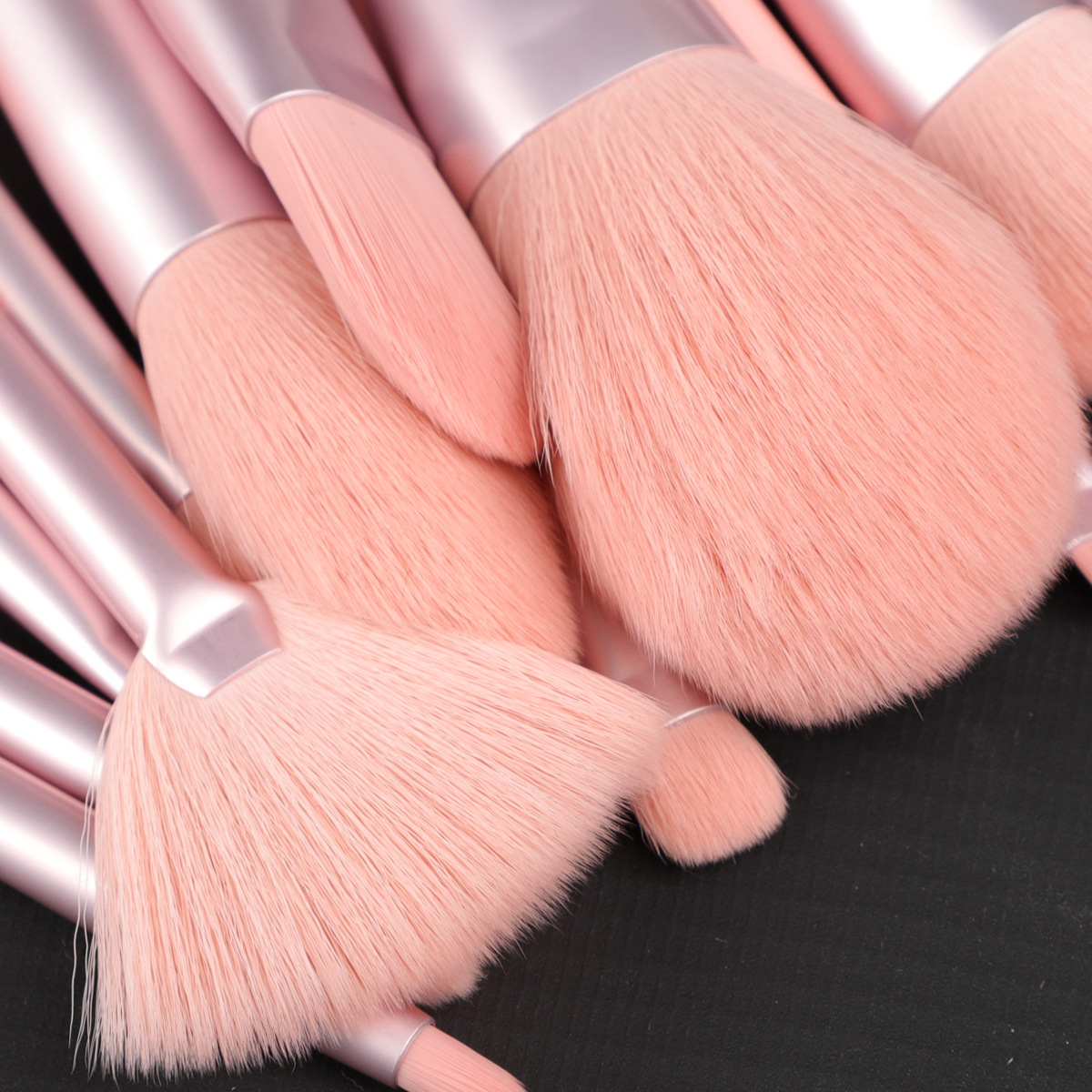 New Private Label 12Pcs Pink Makeup Brush Set Premium Soft Synthetic Hair Makeup Tools for Foundation Concealer Eyeshadow
