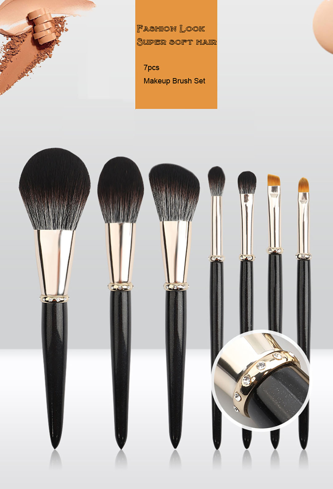 Newest design 7pcs makeup brush set with diamond ferrule