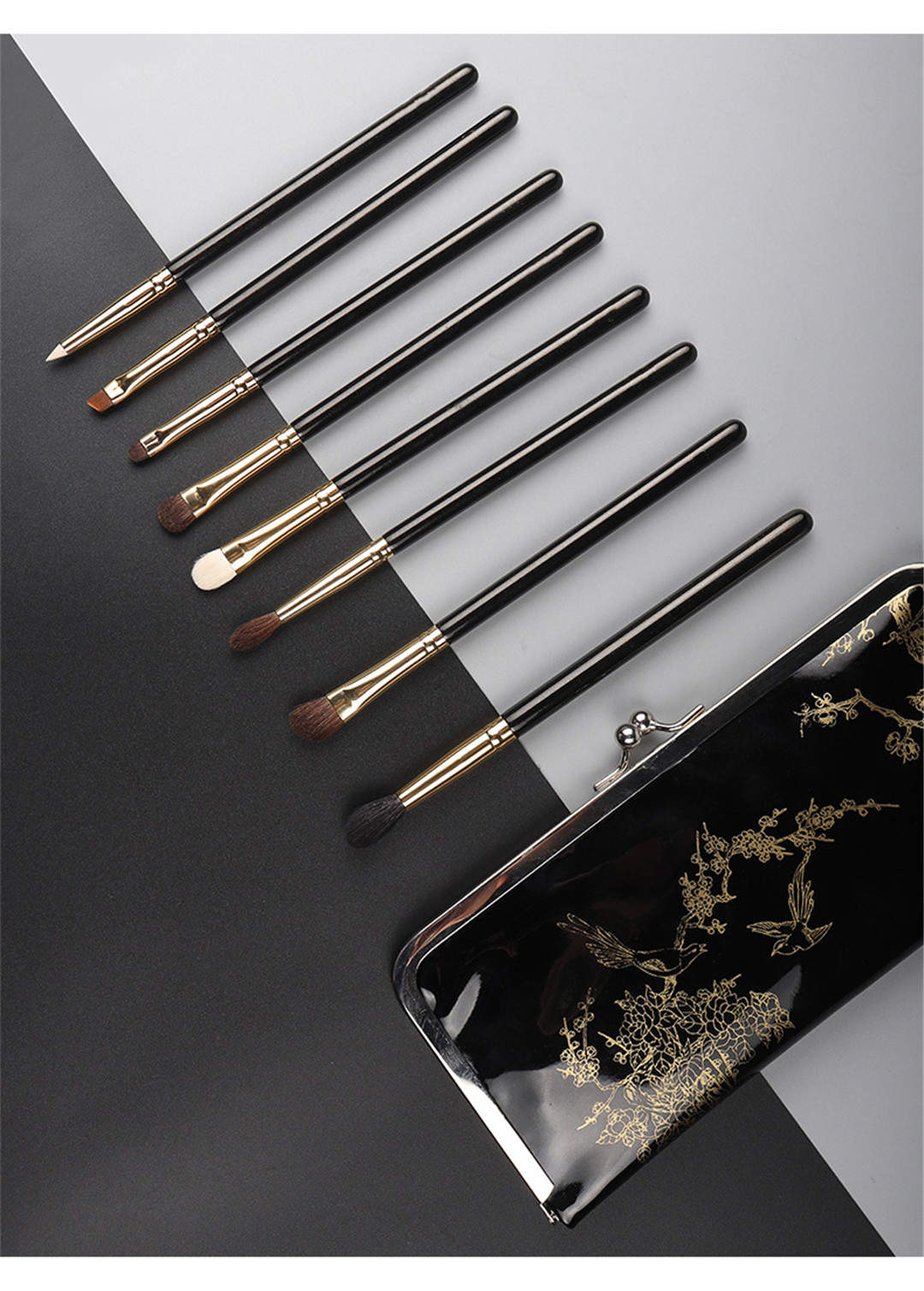 It covers all kinds of eye make up brushes, like eye blending brush, eye contour brush, eye shading brush, shadow brush, eyebrow brush, eyeliner, spoolie brush, lip brush, nose contour brush, highlighter brush, fan brush etc.