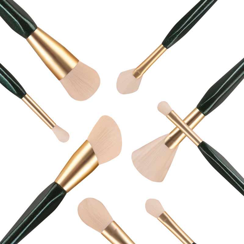kabuki brush; Flat top foundation brush; Multi-function brush; Precision crease brush; Blender brush; Small lip brush; Flat angled foundation brush; blending eye brush; Angled shading brush;