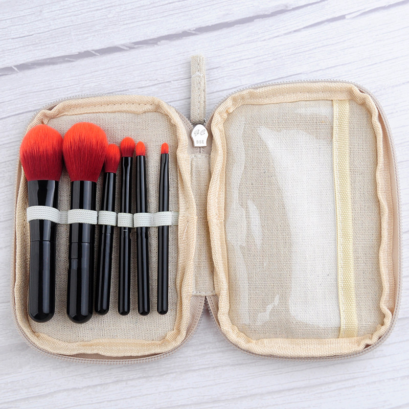 6pcs Black Travel makeup brushes set with case