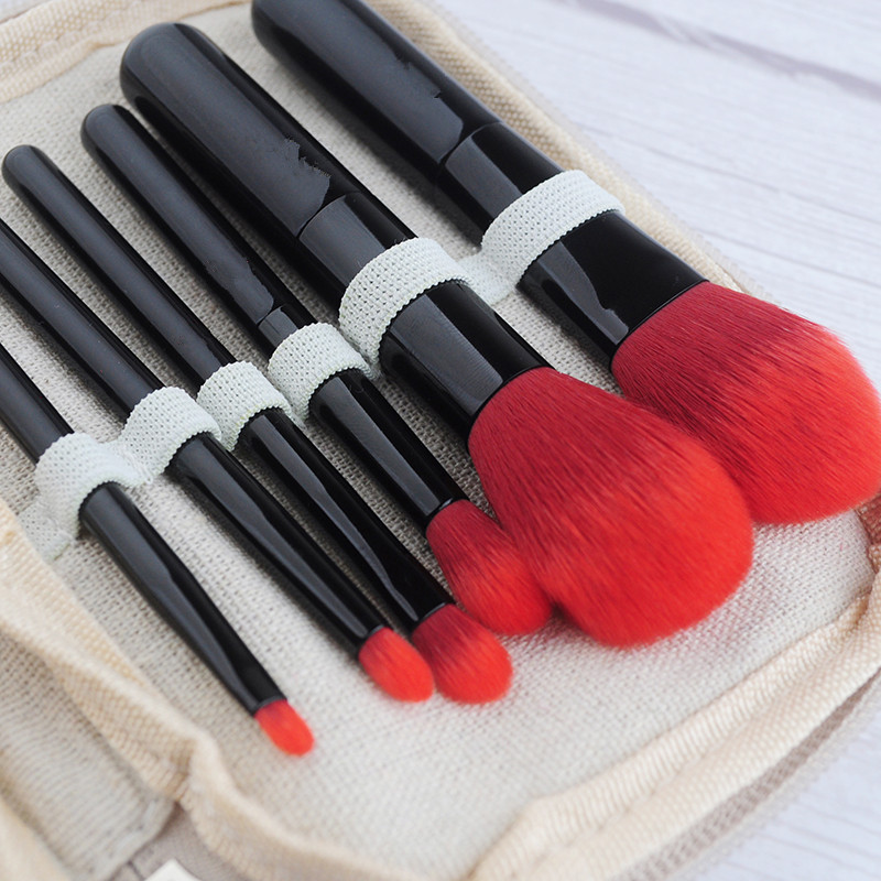 OEM Red vegan hair makeup brushes set 6pcs travel brushes