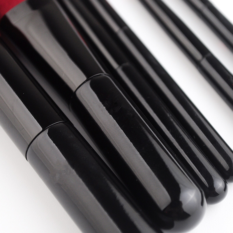 OEM Red vegan hair makeup brushes set 6pcs travel brushes with case
