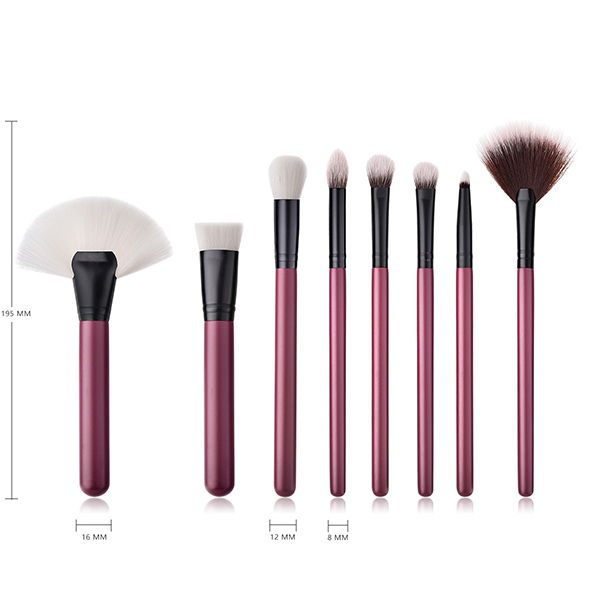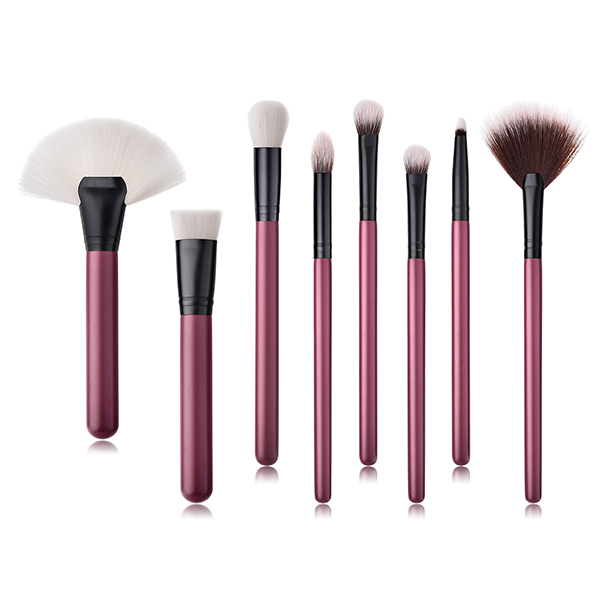 Premium quality 8pcs Dark red makeup brushes set with fan brushes