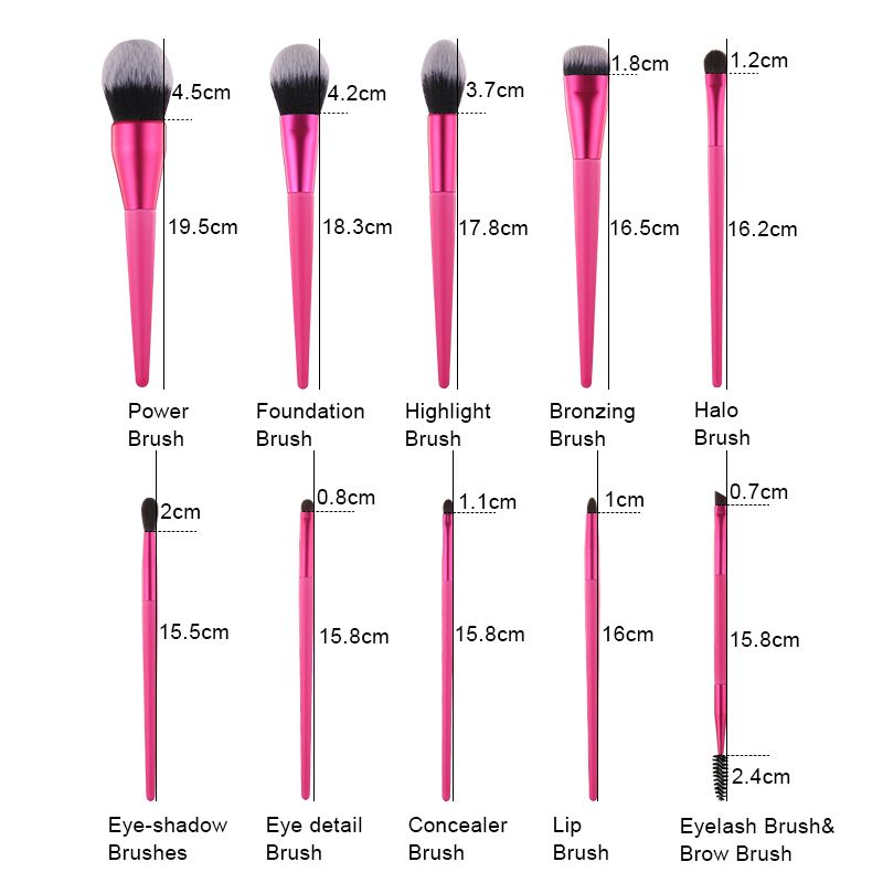 #Makeup Brush Collection: #Powder brush, #Foundation brush, #Highlight brush, #Bronzer brush, #Halo dye brush, #Eyeshadow brush, #Eye detail brush, #Concealer brush, #Lip brush, #Dual end eye brush(Eyeshadow brush & Eyebrow brush)