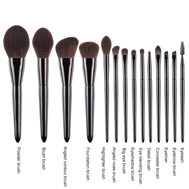 Private label Vegan hair 14pcs black cosmetic brush set