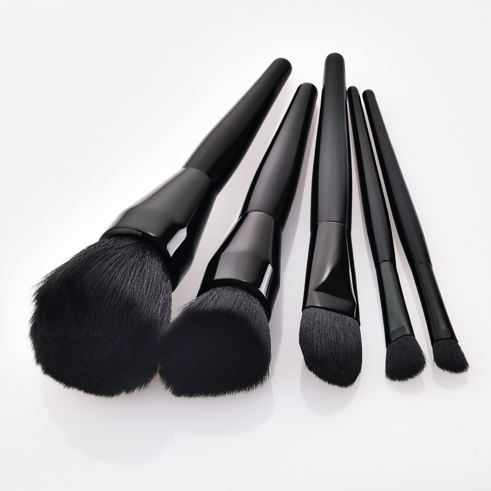 Private logo 5pcs glossy black makeup brushes set travel brushes manufacturer