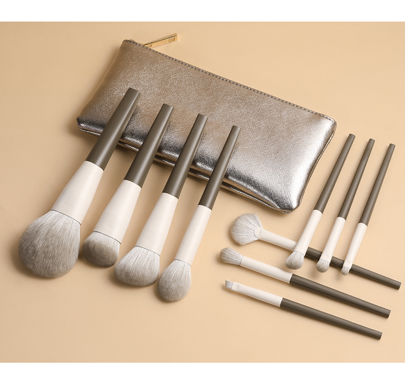 kabuki brush; Flat top foundation brush; Multi-function brush; Precision crease brush; Blender brush; Small lip brush; Flat angled foundation brush; blending eye brush; Angled shading brush;