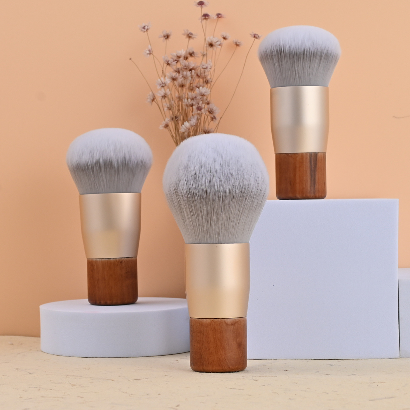 Customise High Quality Wooden Handle Kabuki Brush Single Synthetic Hair Makeup Brushes