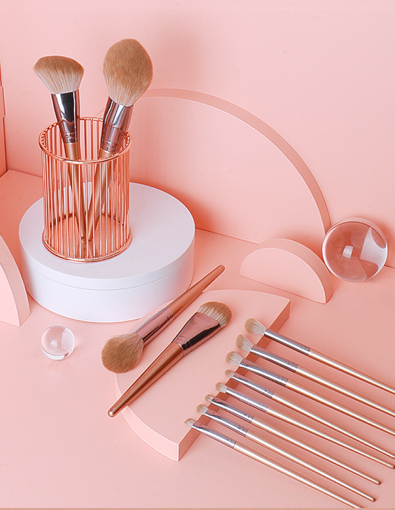 #Makeup Brush Collection: #Powder brush, #Foundation brush, #Highlight brush, #Bronzer brush, #Halo dye brush, #Eyeshadow brush, #Eye detail brush, #Concealer brush, #Lip brush, #Dual end eye brush(Eyeshadow brush & Eyebrow brush)